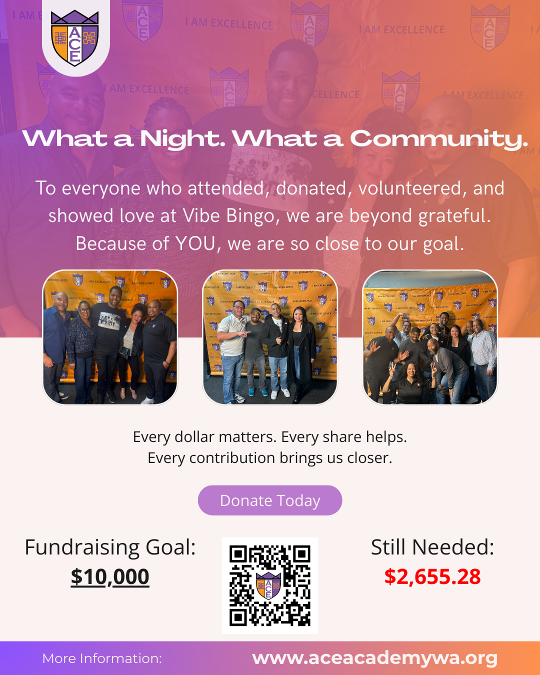 To everyone who attended, donated, volunteered, and showed love at Vibe Bingo, we are beyond grateful. Because of YOU, we are so close to our goal.